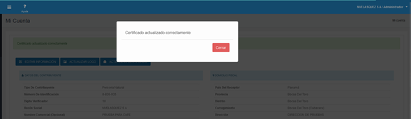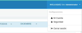 Entramos al perfil de nuestra empresa, vamos a la parte superior derecha en la sección de administrador, desplegamos las opciones y entramos a “Mi Cuenta”: