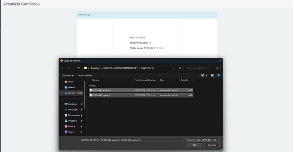NOTA: El proceso para la actualización de las firmas provenientes de FIRMATECH seria el mismo anterior mente indicado, con la única diferencia que al momento de adjuntar la firma solo se adjunta el único archivo .p12 que nos facilitan la unidad gestora.