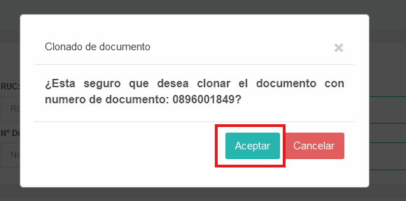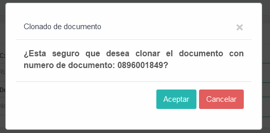 - Al darle click se nos abrirá una ventana con el mensaje indicándonos si deseamos clonar este documento, damos click en el botón Aceptar para continuar el proceso.