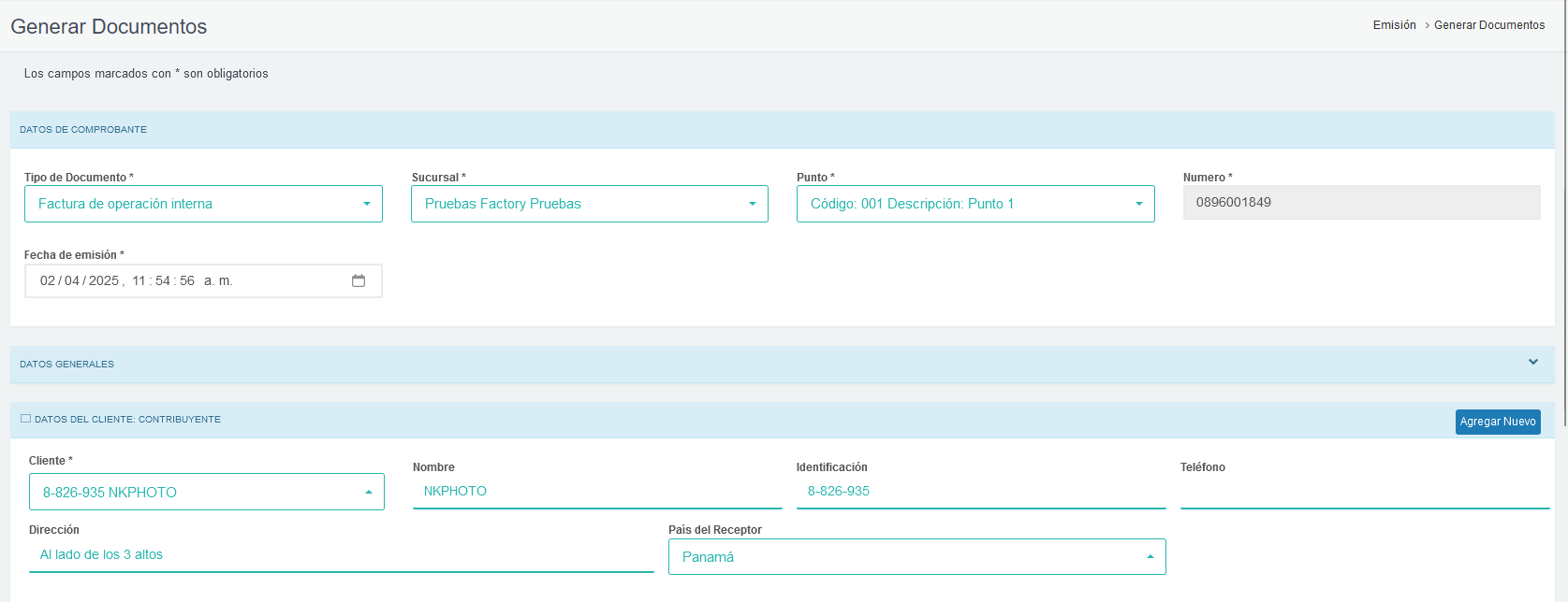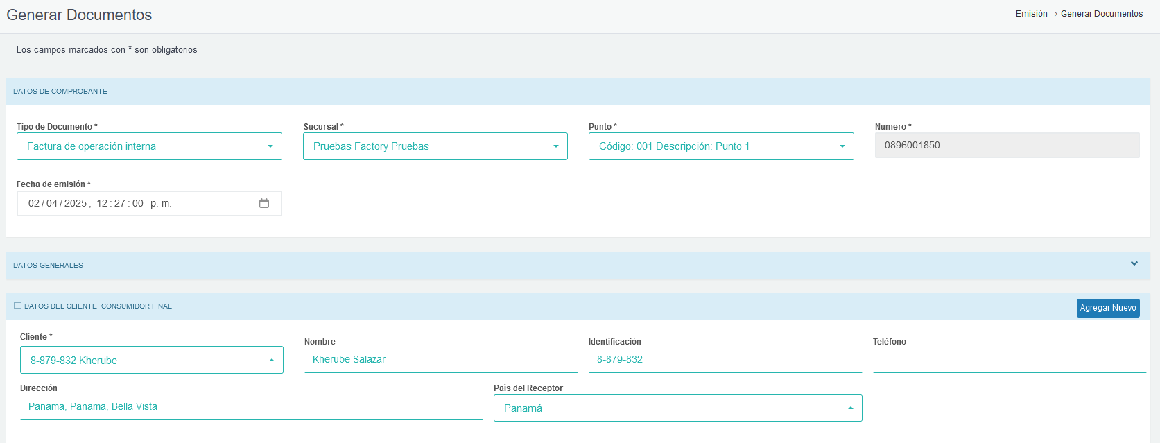 - Automáticamente se nos generará una ventana para emitir el documento con toda la información del documento clonado, podemos culminar la generación haciendo click en el botón Generar Documento.