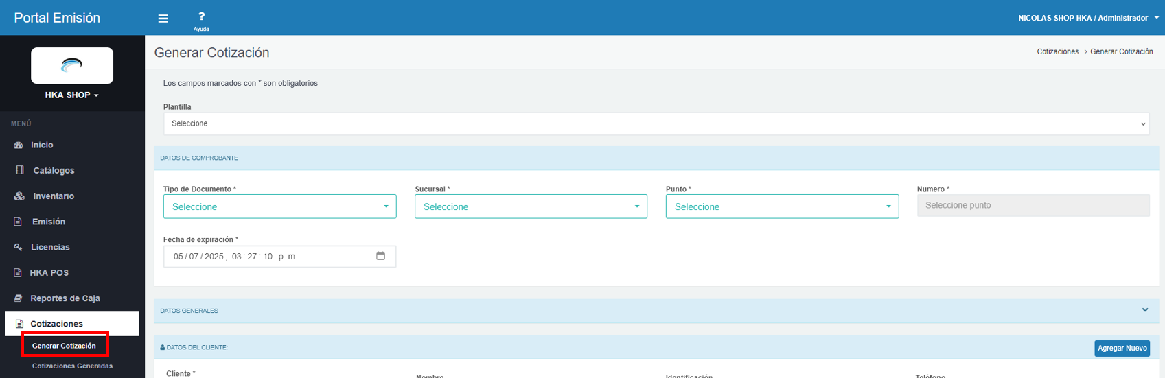 - Le damos click en Generar Cotización y llenamos la información solicitada::