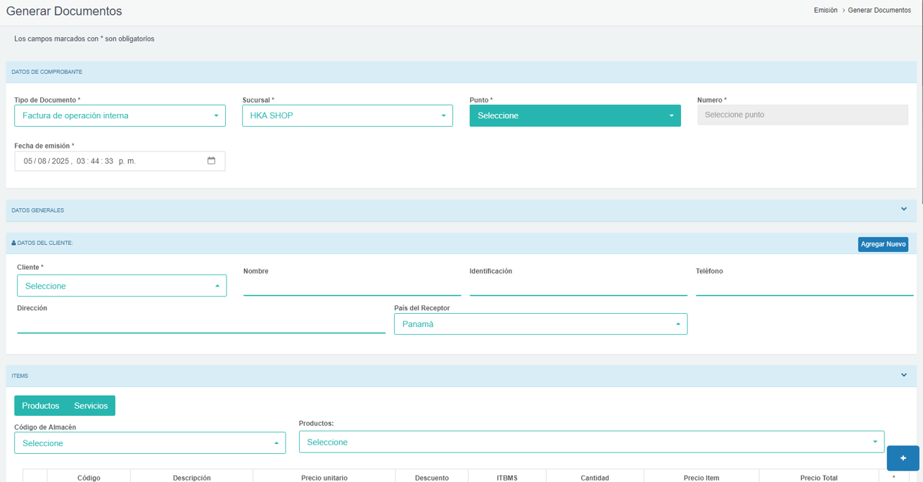 - Se nos abrirá la pantalla para generar la factura con los datos de la cotización previamente realizada, vamos al final de la misma