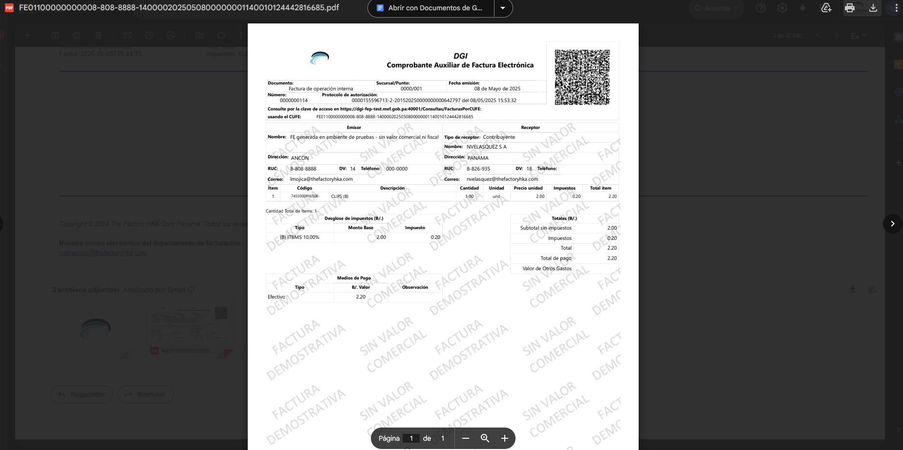 - Automáticamente nos enviara a la sección de Documentos emitidos en donde podremos observar el documento generado, de igual forma le llegara al correo del cliente la factura emitida