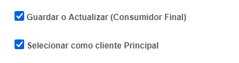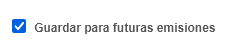 Luego de llenar la sección detalle, procedemos a colocar los datos del cliente dando click en el botón Cliente, procederá a llenar los campos solicitados, desde esta pantalla podemos proceder a crear clientes para emisiones, una vez completamos todos los campos podemos guardar la configuración para una futura emisión marcando el gancho en las siguiente casillas: