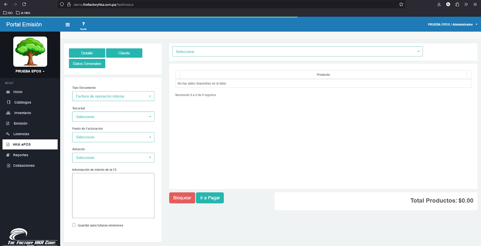 Se procederá a abrir una nueva ventana con nuestro nuevo módulo para emisión HKA ePOS
