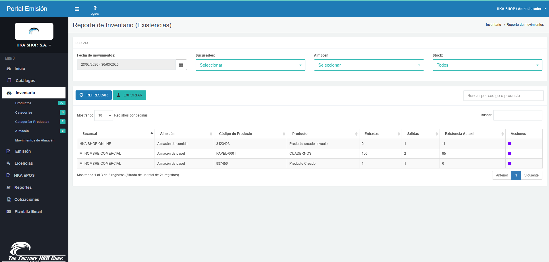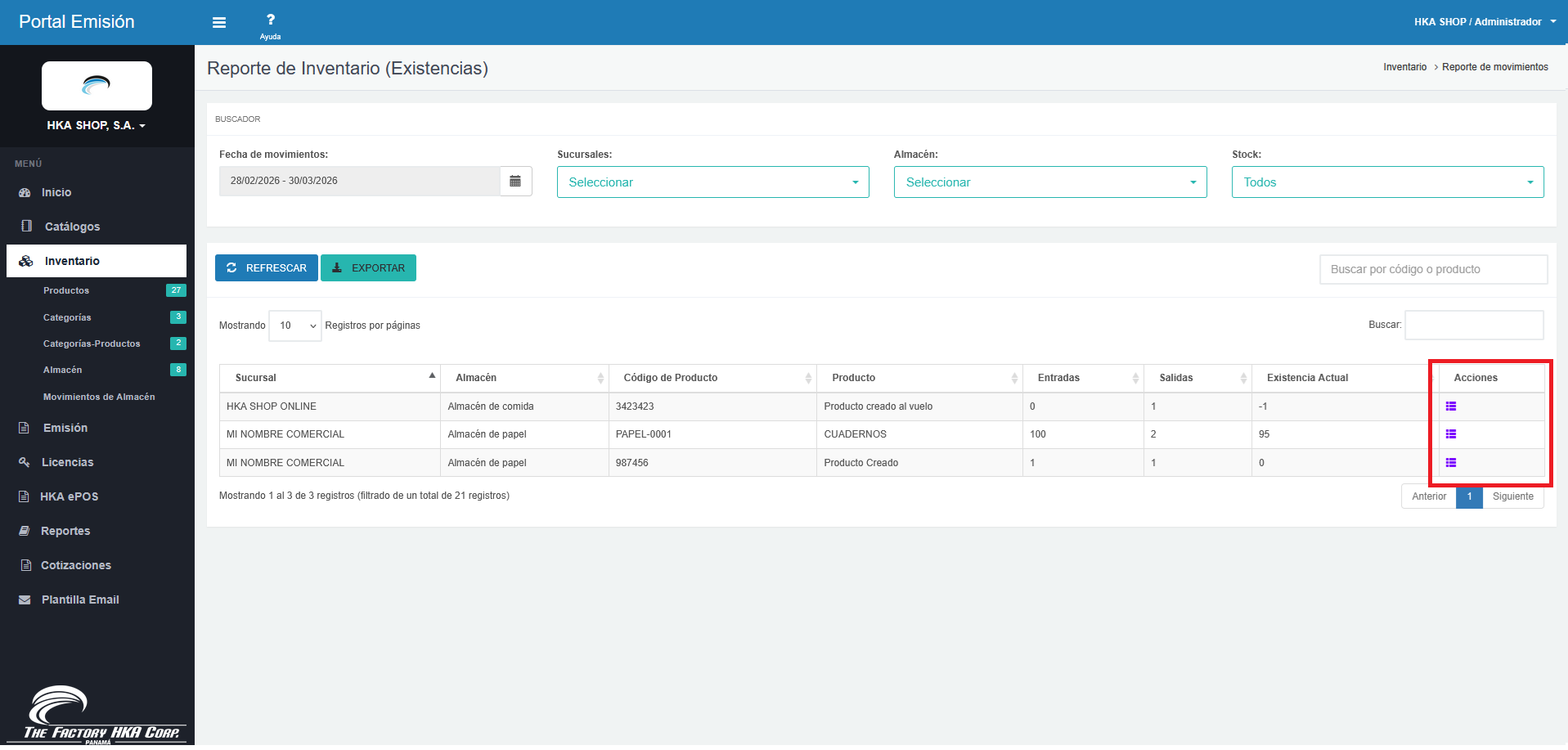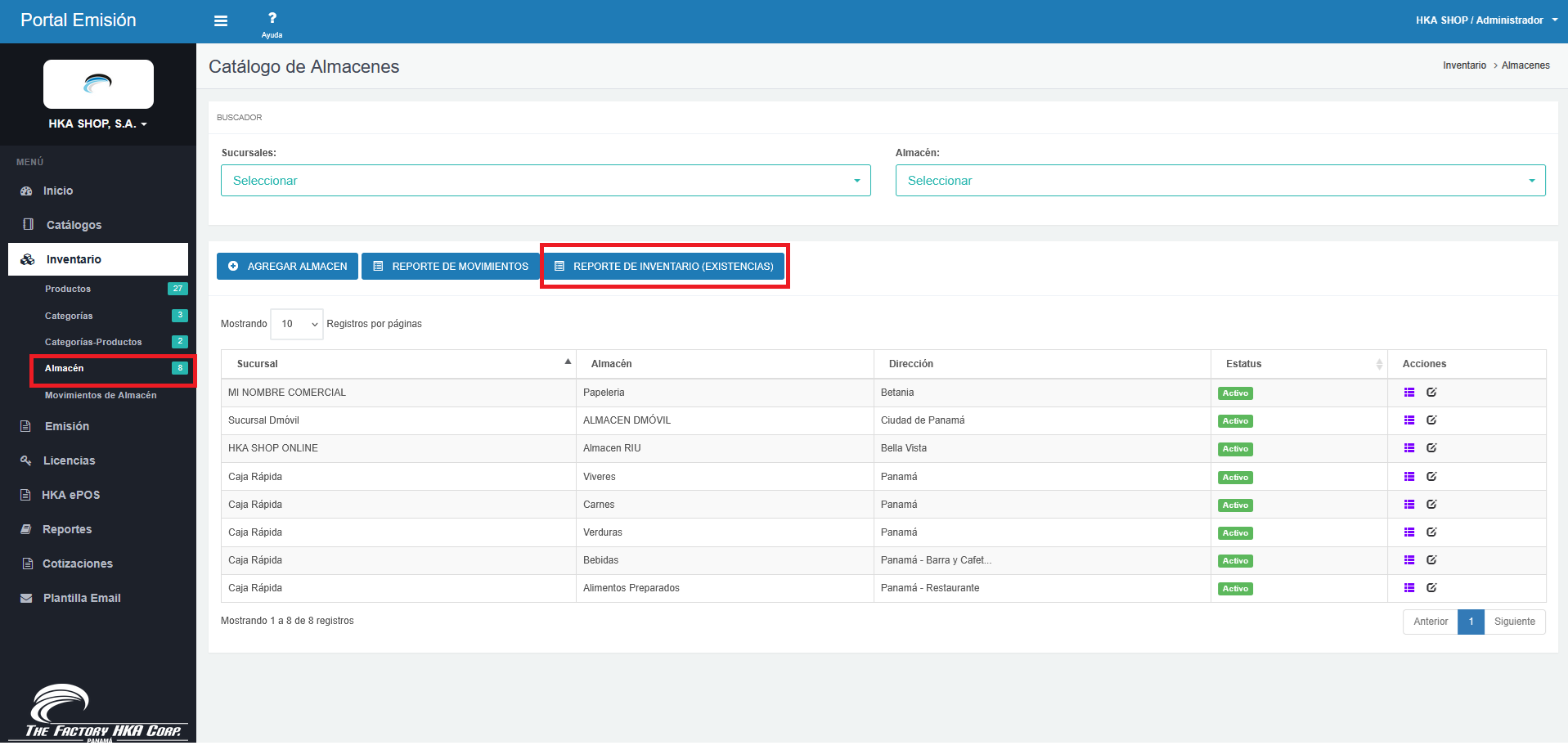 Sucursal: La ubicación física a la que pertenece el inventario mostrado.
